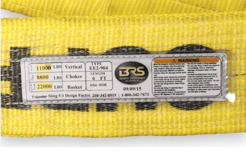 The EE2-902 Synthetic Web Sling is our most popular size. It is USA made, cut, crafted, and sewn here at our manufacture facility. It features 2″ Polyester material in a Double Ply. It has large, tapered eyes for easy attachment to hardware. These slings are great for overhead lifting or pulling applications, and may be used in the vertical, basket, and choker positions. The tag includes proper warnings and working load limits.